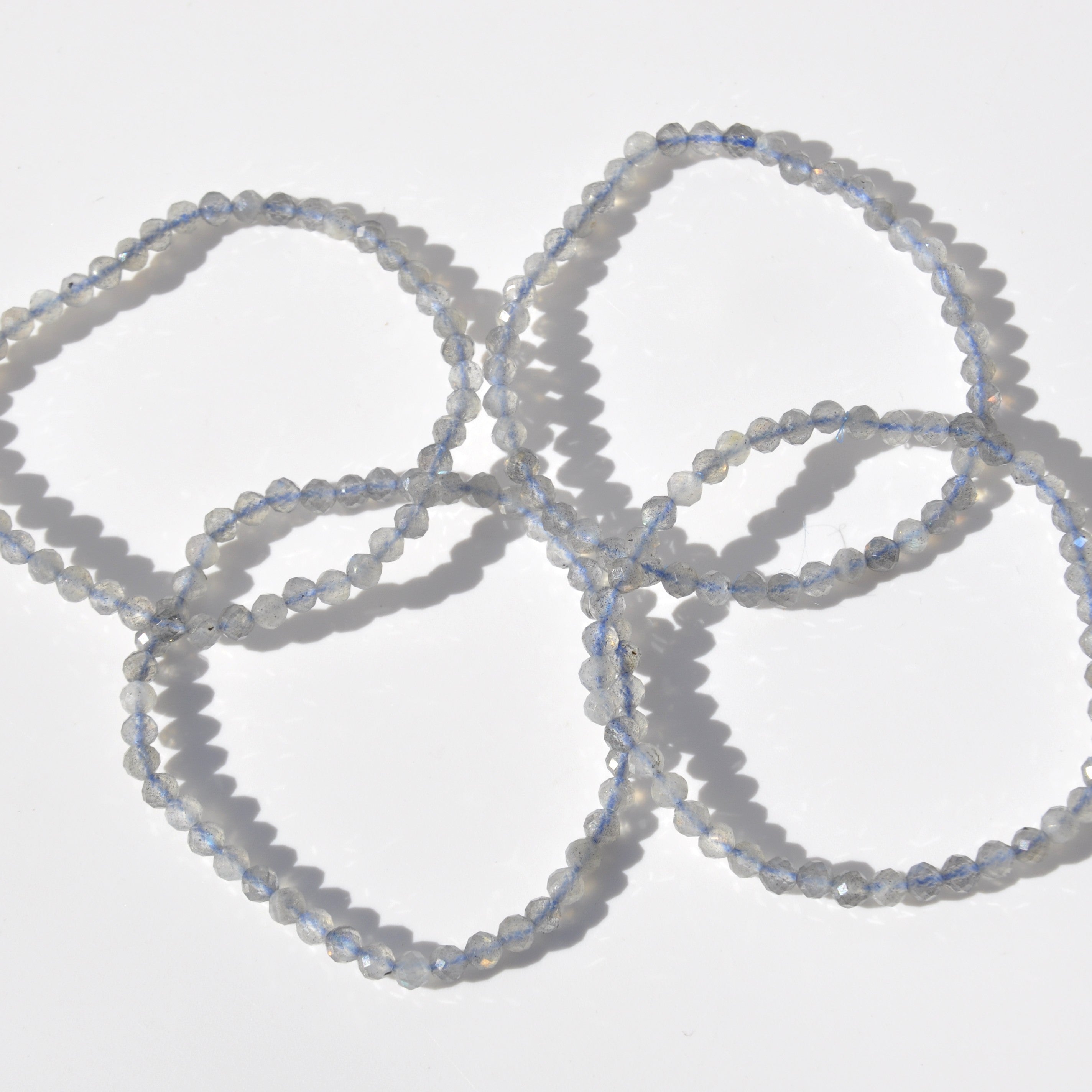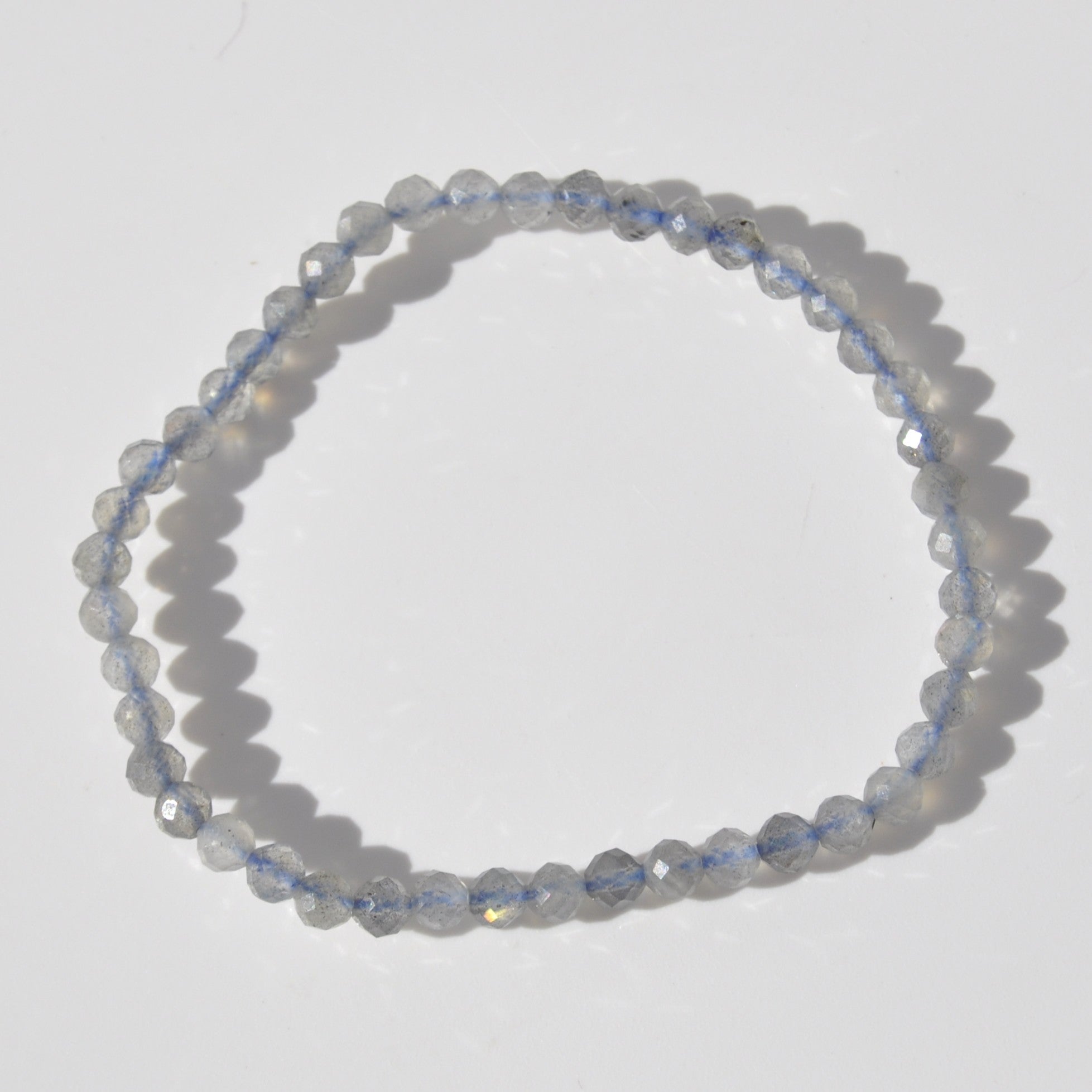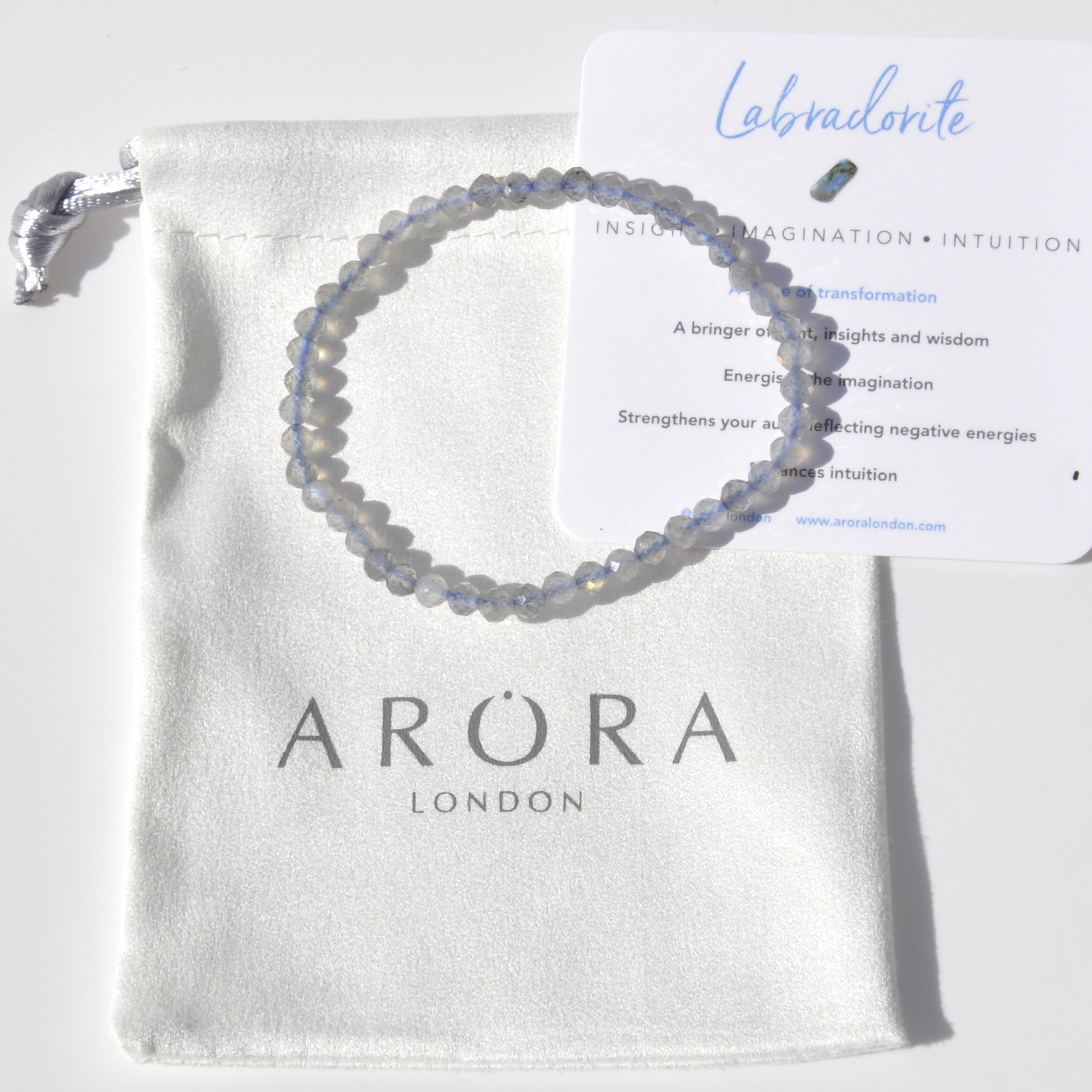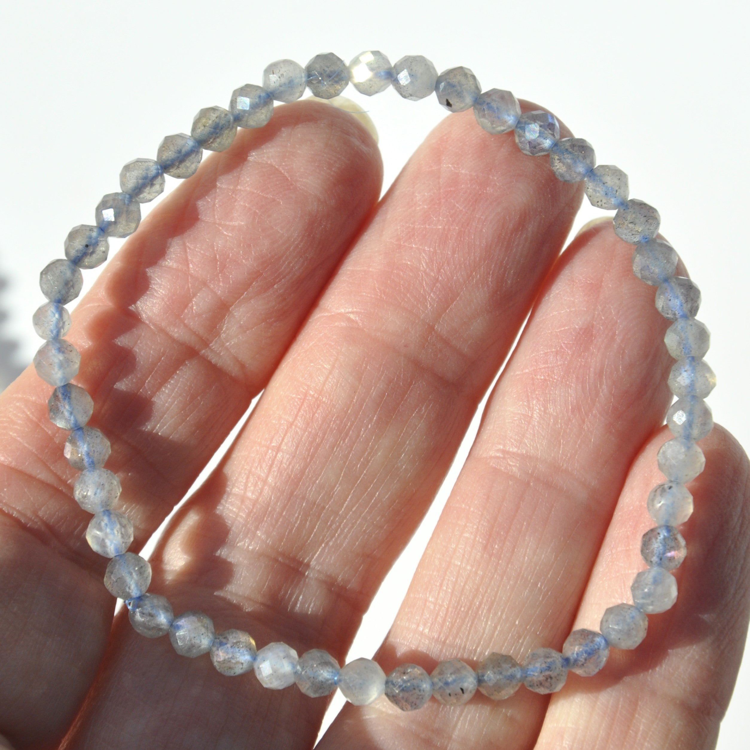 This dainty stretch-beaded bracelet is made from gorgeous iridescent grey Labradorite faceted crystal beads. Labradorite is the stone of transformation and a bringer of light, insights and wisdom. It helps energise the imagination and strengthens your aura, reflecting negative energies.