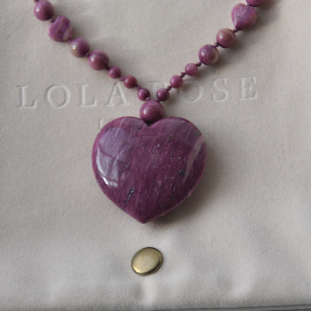 LOLA ROSE Pink Rhodonite Heart Pendant Necklace