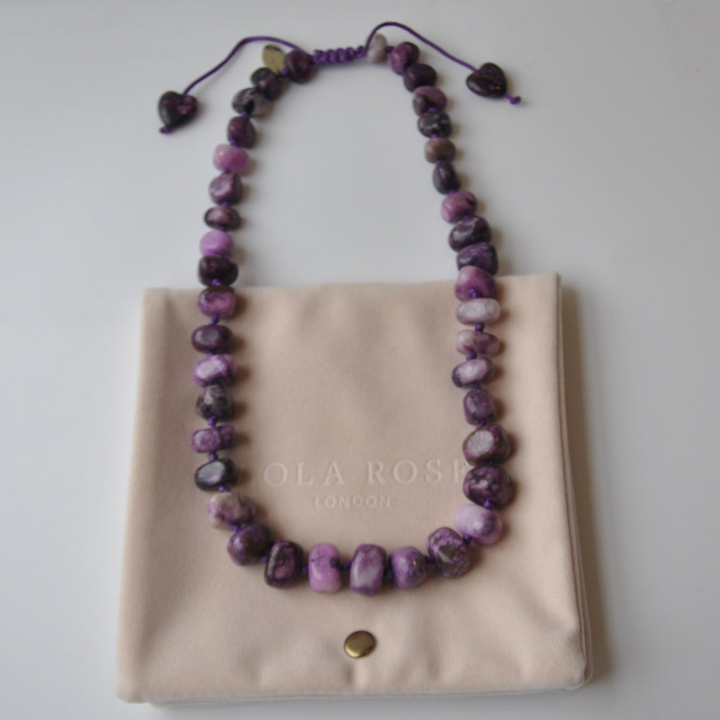 LOLA ROSE Purple Fossil Jasper Gemstone Necklace 45cms Adjustable