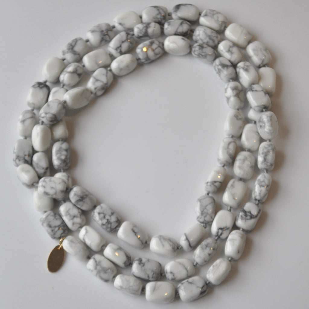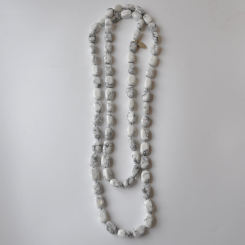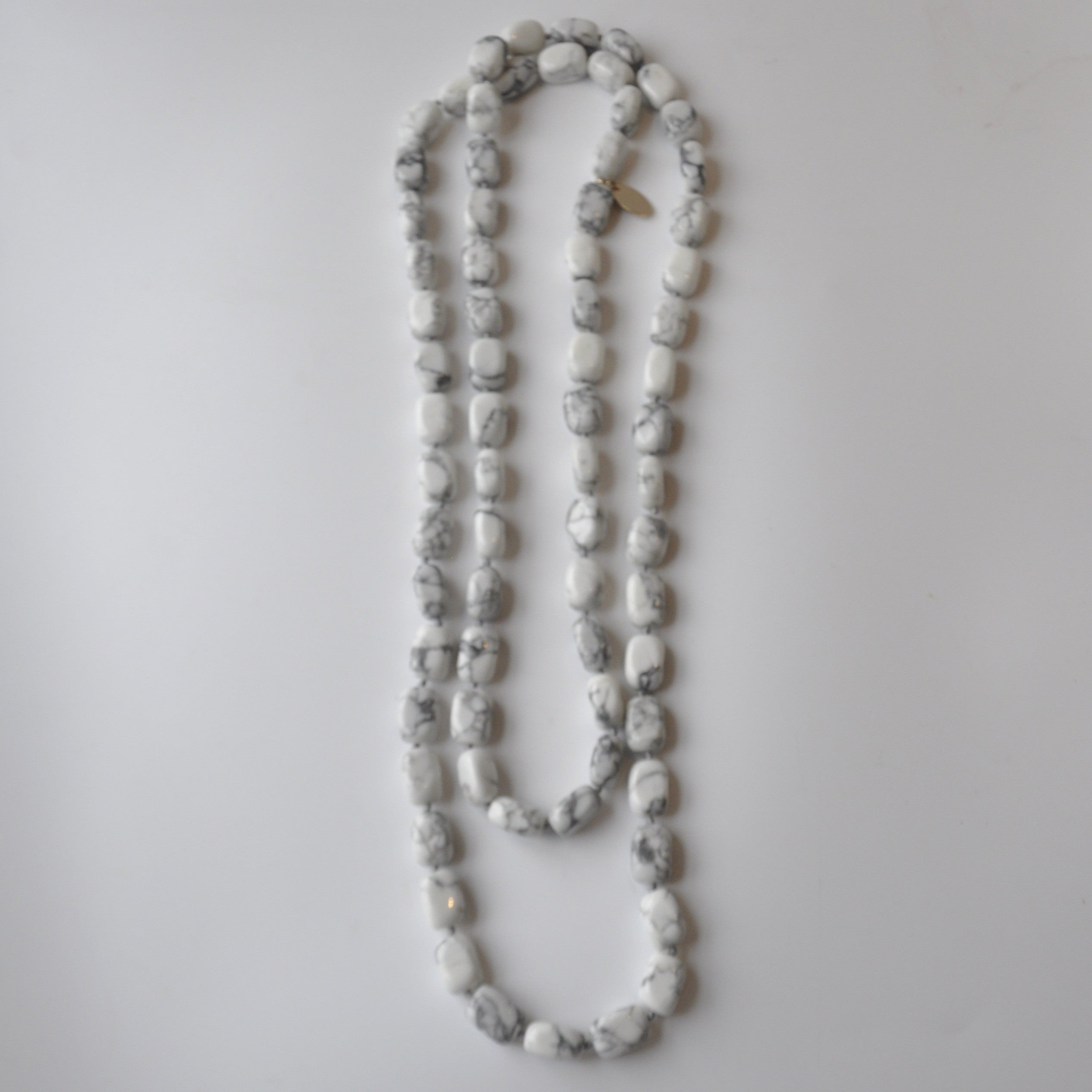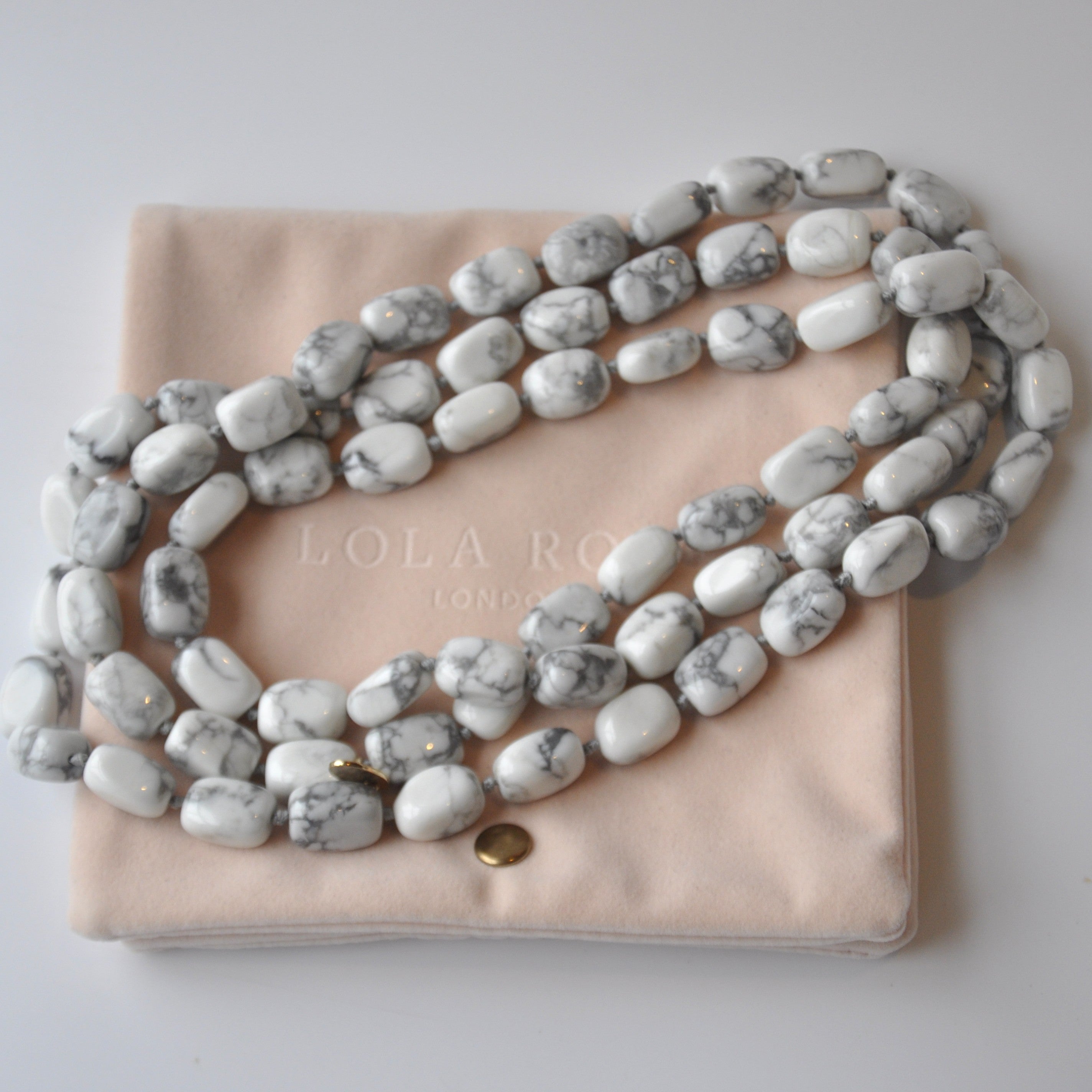Absolutely beautiful White Howlite gemstone necklace.  Long length - 165 cms / 66 inches - but can be worn doubled or tripled up to make a stunning piece.  Lovely quality oblong beaded stones each sized 1cm x 1.5cms.  Gold Lola Rose branded tag.