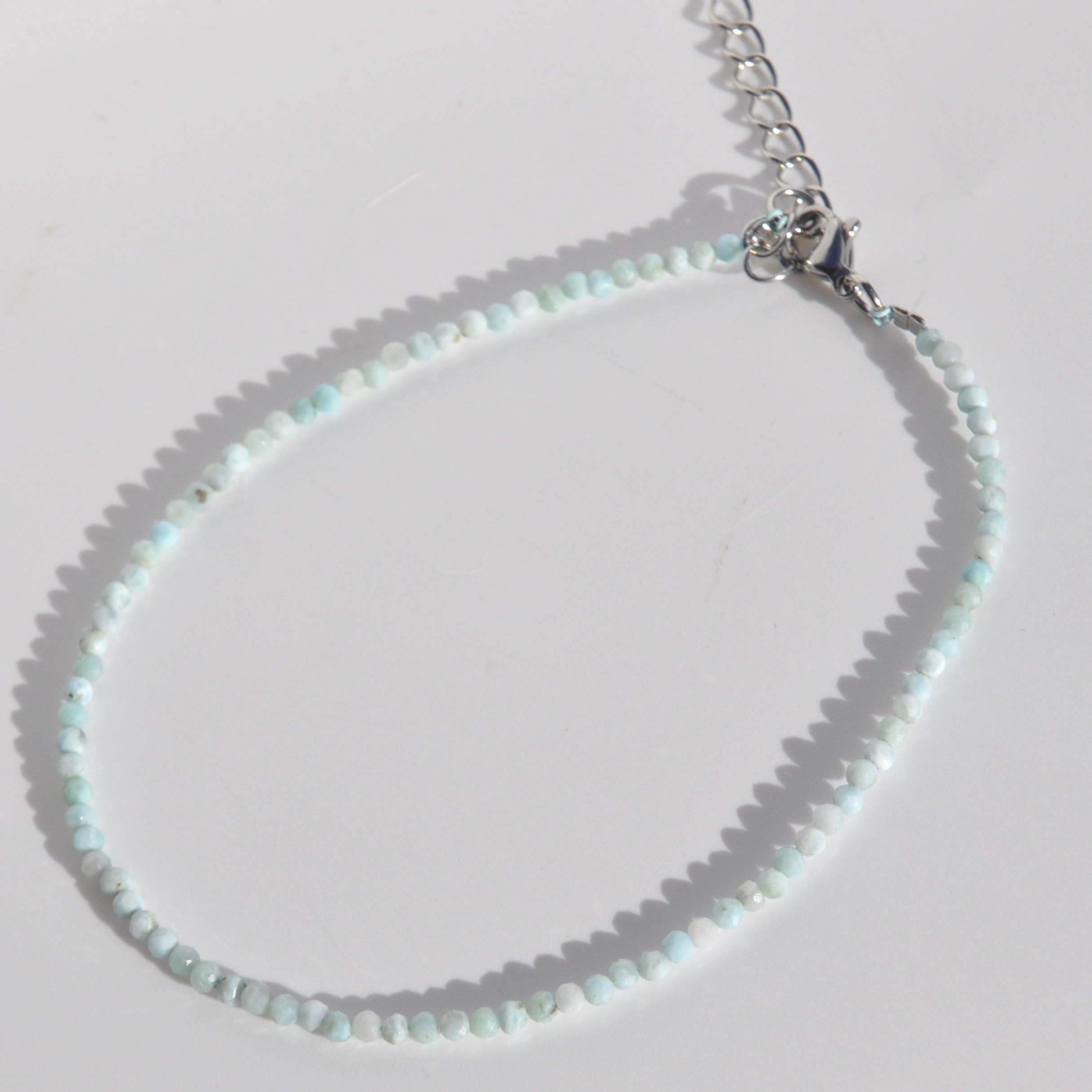 These are gorgeous dainty gemstone beaded anklets made from 2mm faceted crystal beads which give a lovely sparkle when worn around the ankle.