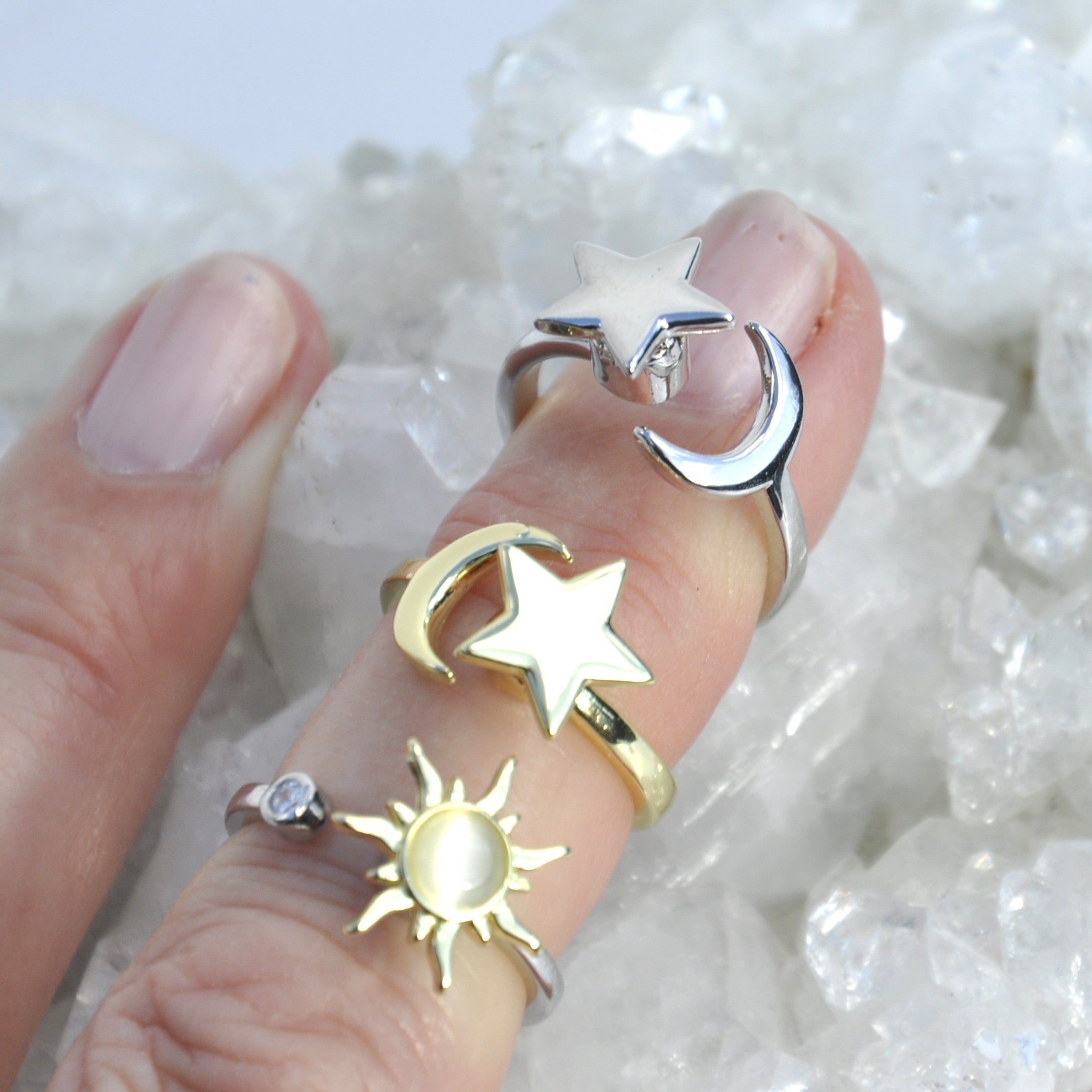 Adjustable spinner rings to help support you through anxious, nervous times. A great outlet for those with nervous energy. Simply spin the rotating sun or star charm to help calm and soothe you.