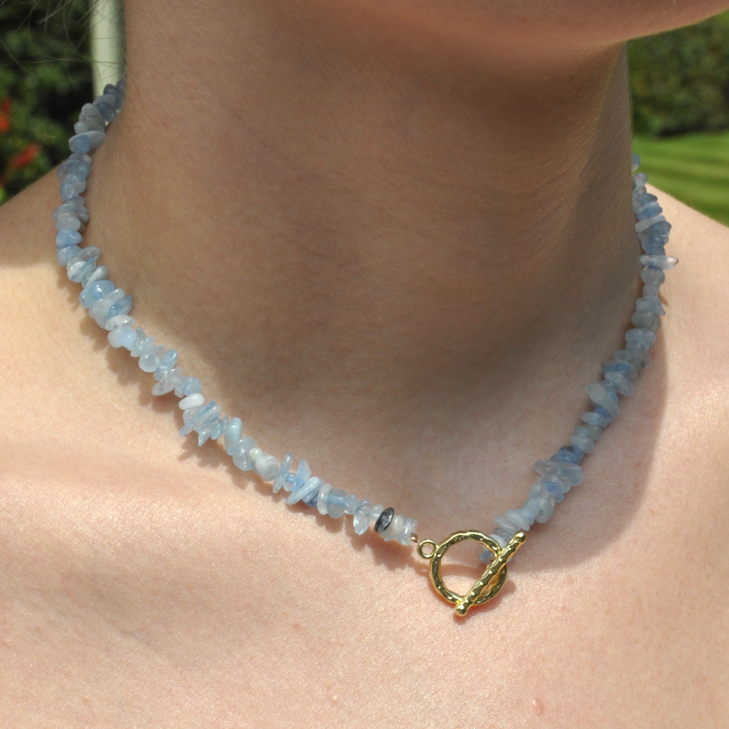Dainty Crystal Chip Gemstone Necklace with T-Bar Clasp - choice of crystals